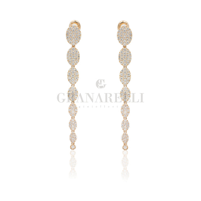 Orecchini pendenti in oro Rosa 18 ct con diamanti bianchi, fantasia ovalini.
