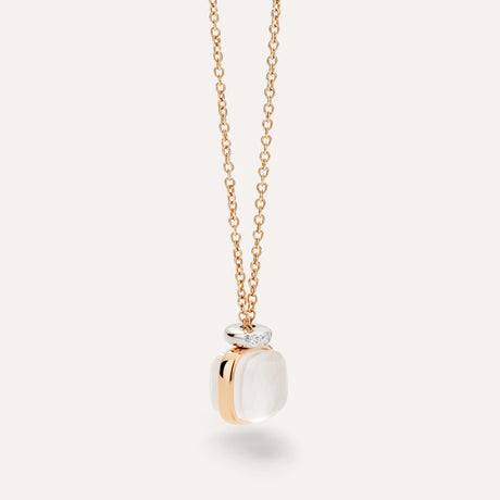 Collana Pendente Nudo Mini in Oro Rosa con Quarzo Milky e Diamanti