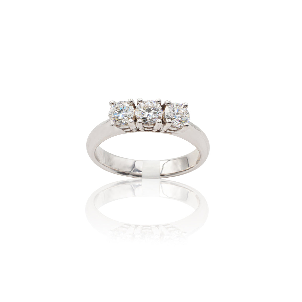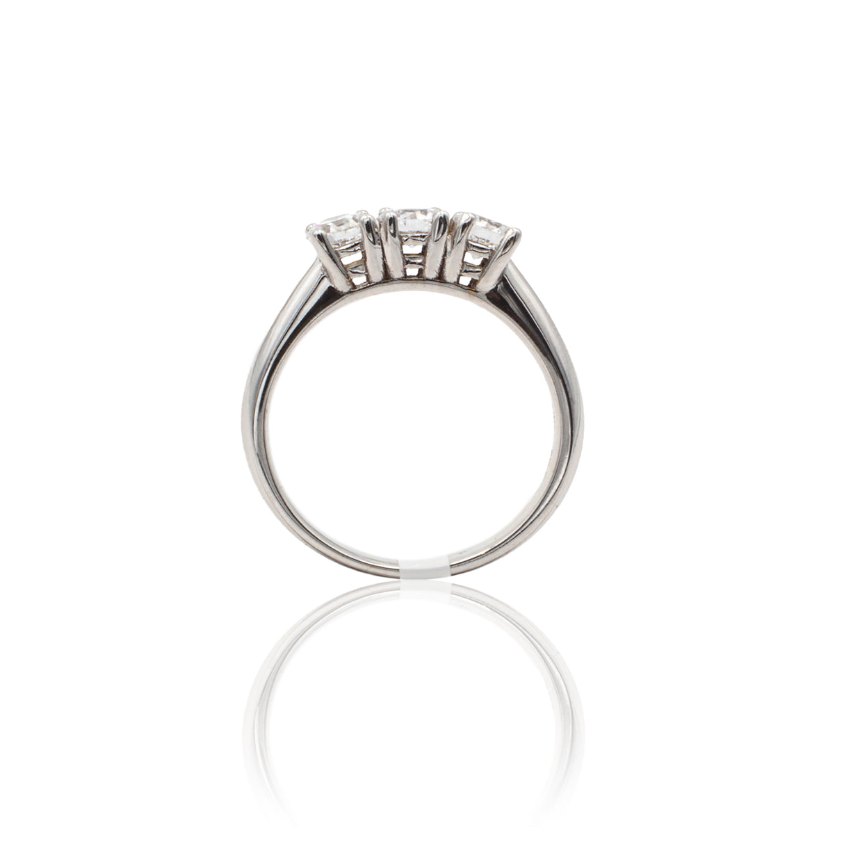 Anello trilogy in oro bianco 18 kt e diamanti taglio brillante.