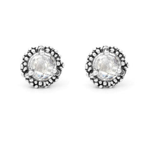 Giovanni Raspini - Questi orecchini, dalla delicata e luminosa eleganza, nascono dal connubio fra la purezza degli zirconi trasparenti e la bellezza contemporanea del decoro stile Perlage in argento brunito. Realizzati completamente a mano in home.