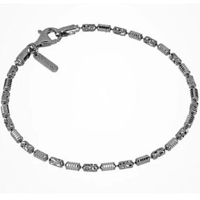 Bracciale in argento color canna di fucile con catena a palline di elementi cilindrici a diamantature alternate, per una luminosità che dura nel tempo.