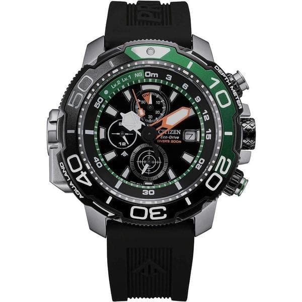 El nuevo promastro de cronógrafo Aqualand Chronograph Diver es imponente, con un estuche de 50 mm de diámetro y 15.9 mm de espesor, incluso más si consideramos que solo está disponible en acero. Monte el calibre 740 ECO-Drive comunes a los modelos con cronógrafo y calibre profuso. El calibre 740 garantiza la carga completa de 60 días de autonomía y la serie de características más completas disponibles en un promotor submarino.