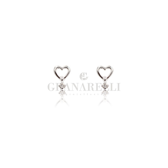 Orecchini cuore in oro bianco 18 ct e diamanti bianchi.
