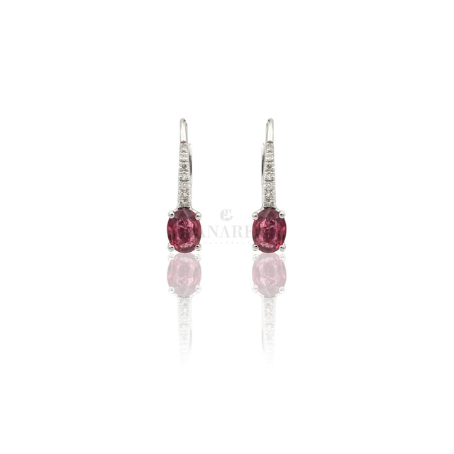 Boucles d'oreilles avec monachella, 18 kt d'or blanc, de rubis et de diamants blancs.