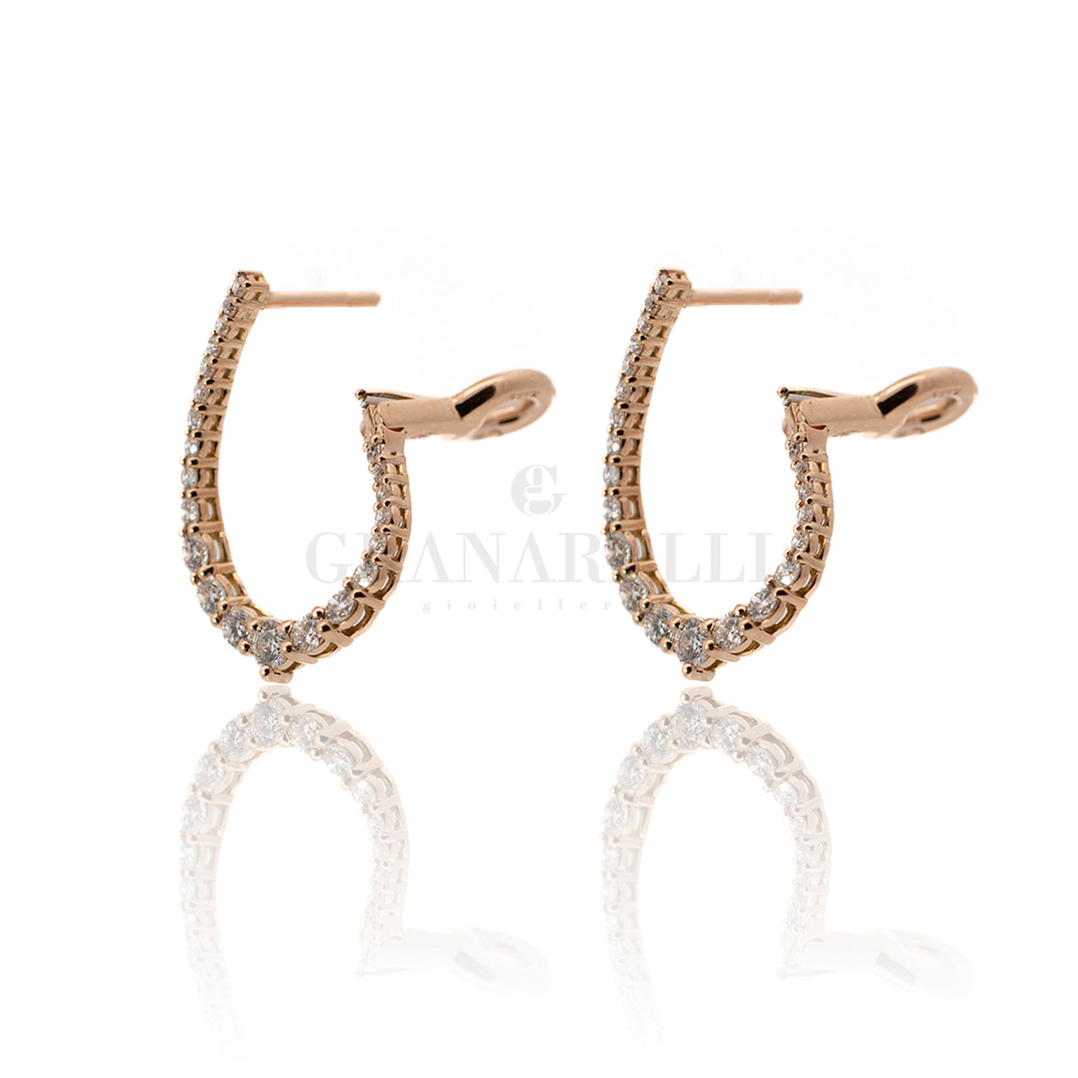 Boucles d'oreilles en or rose 18 kt avec des diamants blancs, décrivant l'image de Marie et du Sacré Cœur de Jésus.
