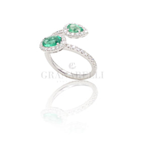 Anello doppio in Oro Bianco con Smeraldi 1.05kt e Diamanti