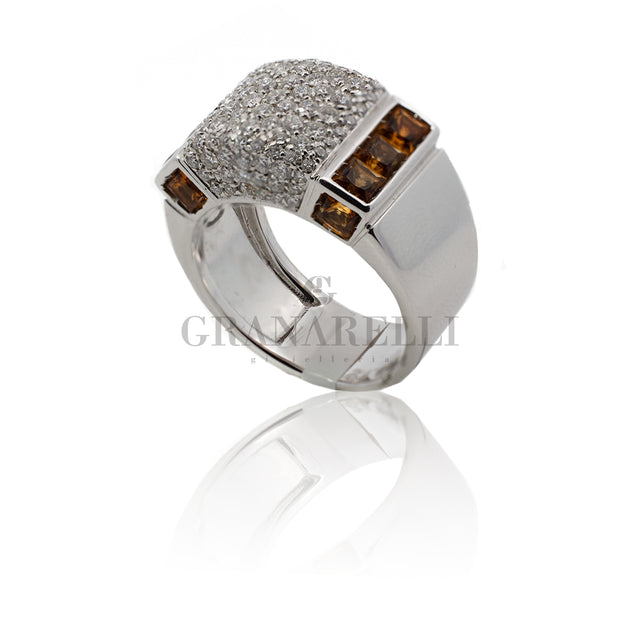Bague en or blanc de 18 kt avec saphir et diamants.