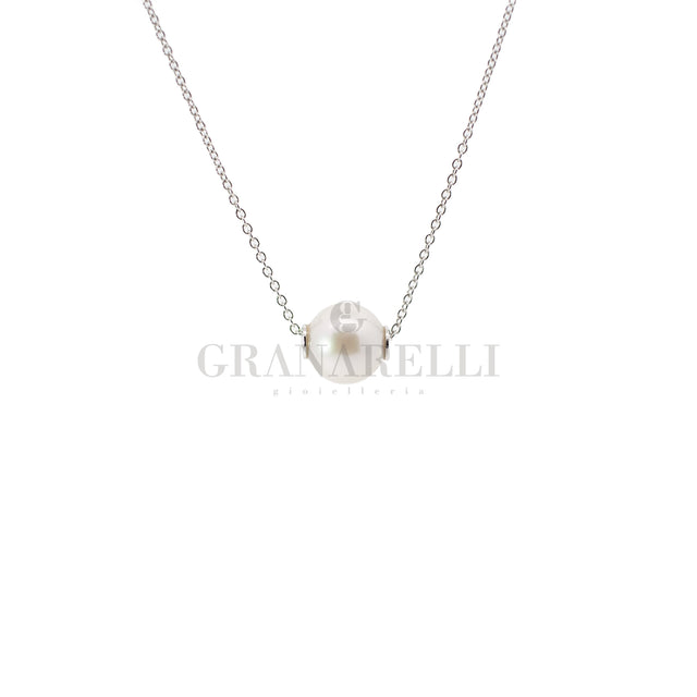 Collier avec croix en or blanc 18 kt et diamants blancs