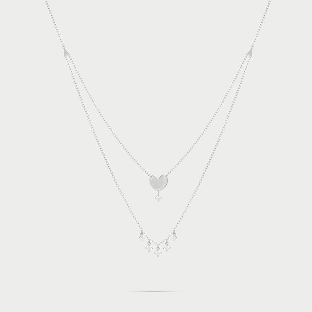 Girocollo con doppia catena cuore e punti luce pendenti in zirconi rossi