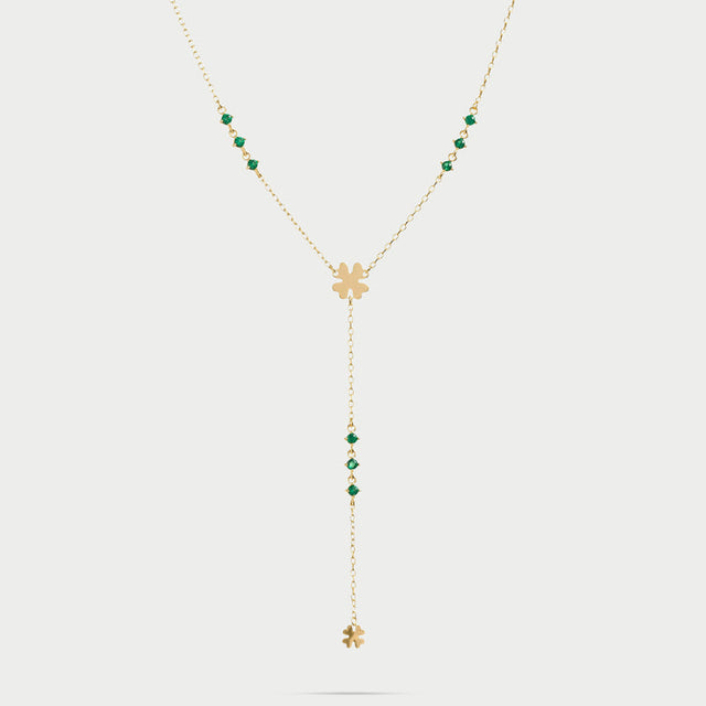 Girocollo modello rosario catena quadrifoglio e punti luce in zirconi verdi