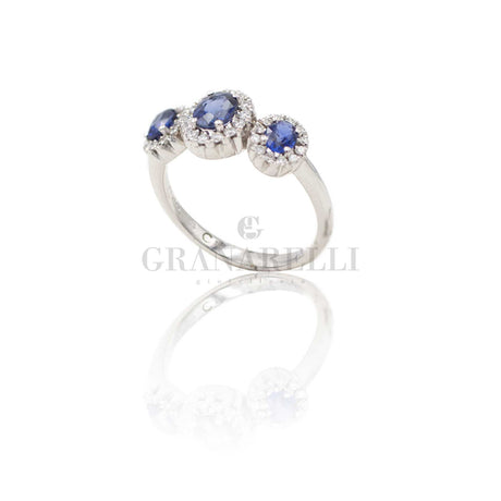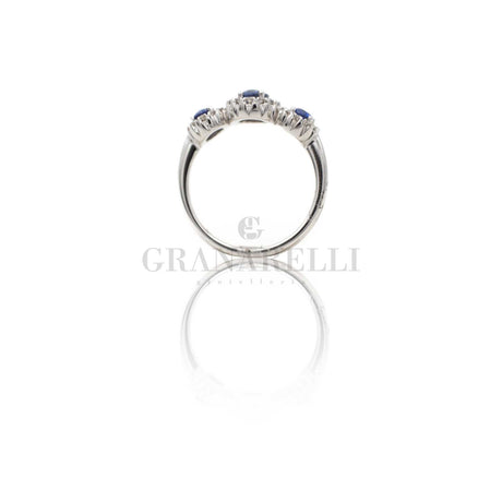 Anello Fedina 3 Zaffiri Ovali e Diamanti Bianchi