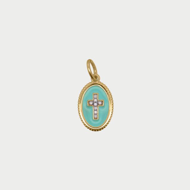 Cross Sky è un charm componibile a forma di croce smaltata turchese in argento 925, realizzato in Italia. Un simbolo di fede e protezione da aggiungere con eleganza al tuo bracciale o collana