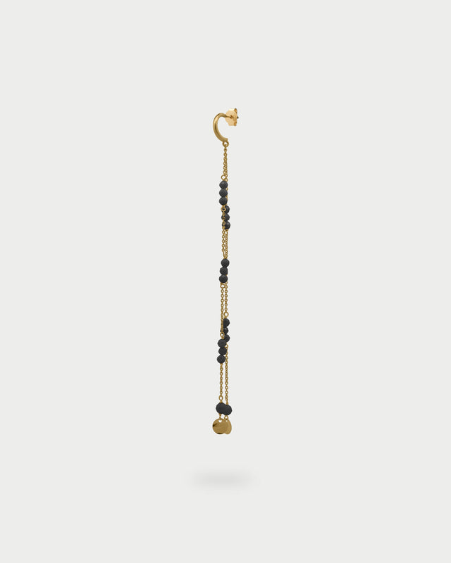Un solo orecchino, ma tutta la forza dello stile. Questo mono-orecchino Gipsy Chic è pensato per chi ama distinguersi con discrezione. Le due catene sottili e leggere, realizzate in argento 925 con galvanica dorata, sono impreziosite da delicate pepite di zirconi milky che riflettono la luce con raffinatezza. Il design asimmetrico e fluido regala movimento e personalità, rendendolo perfetto da indossare da solo o mixato ad altri orecchini per un effetto orecchio curato e contemporaneo.