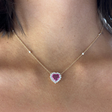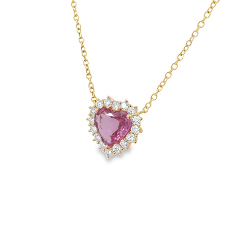 Girocollo Zaffiro Rosa taglio Cuore 1,51kt con diamanti in Oro Rosa