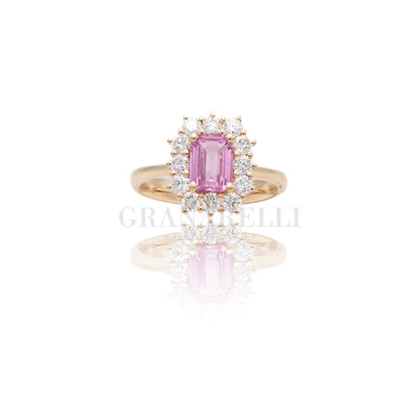 Anello in Oro Rosa con Zaffiro rosa 1.32kt e Diamanti