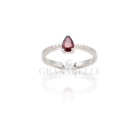 Anello con Rubino 0,49ct taglio Goccia e Diamanti