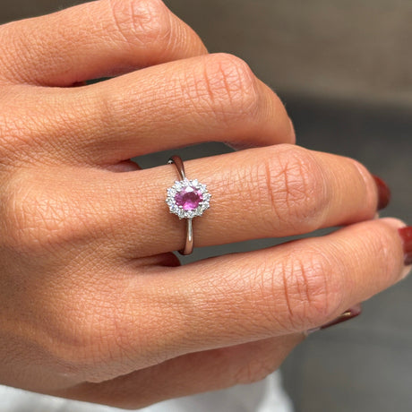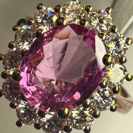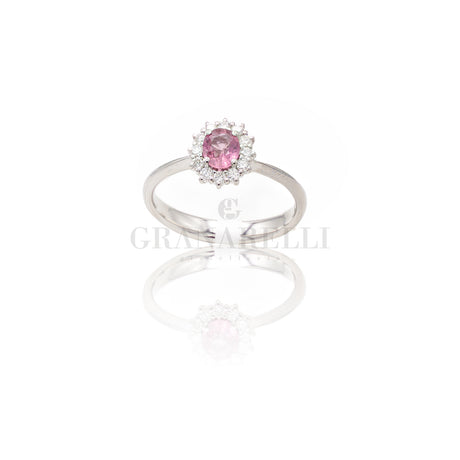 Anello con Zaffiro Rosa 0,45ct taglio Ovale e Diamanti