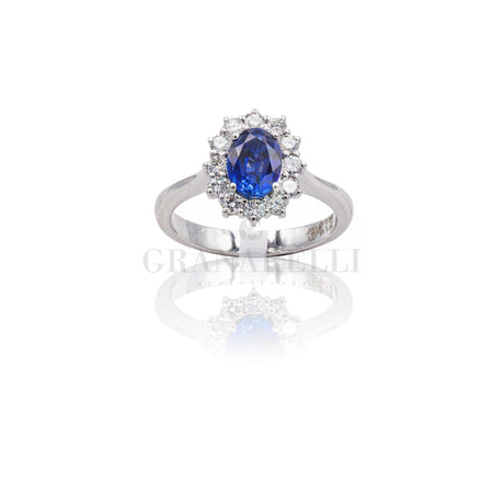 Anello in Oro Bianco con Zaffiro 0.99kt e Diamanti