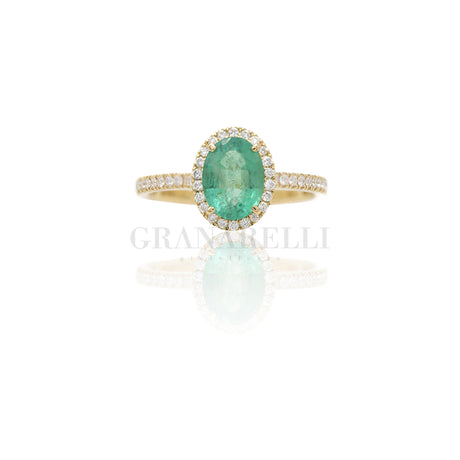 Anello in Oro Giallo con Smeraldo 1.18kt e Diamanti