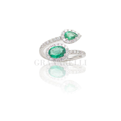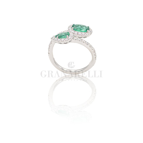 Anello doppio in Oro Bianco con Smeraldi 1.05kt e Diamanti
