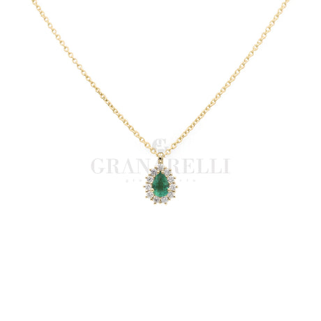 Girocollo Goccia Smeraldo 0.37 kt con Diamanti in oro giallo