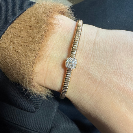 Bracciale tubogas quadrato con Diamanti In Oro rosa