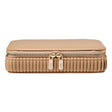 L'astuccio portagioie con cerniera Bella dona opulenza e raffinatezza con il suo esterno liscio in tessuto vegano, i lati perfettamente plissettati e le finiture dorate. All'interno, tre scomparti foderati in LusterLoc™ per i tuoi gioielli, 2 rotoli porta anelli per anelli o orecchini e, nel coperchio, 2 tasche portaoggetti elastiche aggiuntive. Semplicemente splendido.