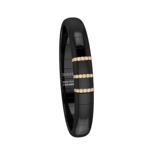 Bracciale pura grande in ceramica nera lucida con 3 barretta diamanti brown oro rosa alternate misura uomo. Bracciale in ceramica nera lucida Gioielli flessibili e facili da indossare grazie all’estensione della molla che dona loro un’ottima vestibilità, per un classico rivisitato in chiave moderna, fresco e frizzante.