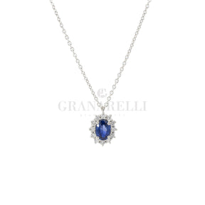 La classe è senza tempo. Collana in Oro Bianco 18 kt con Zaffiro e Diamanti, creato in laboratorio dai nostri Orafi esperti.