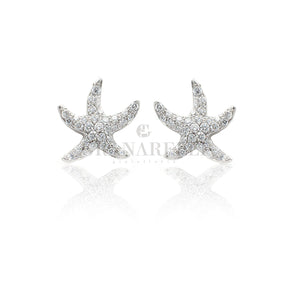 Orecchini Stella Marina in Oro Bianco e Diamanti Bianchi