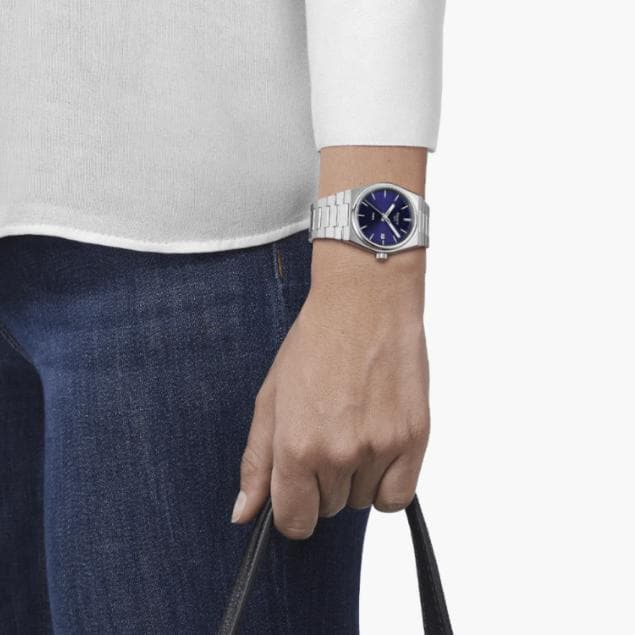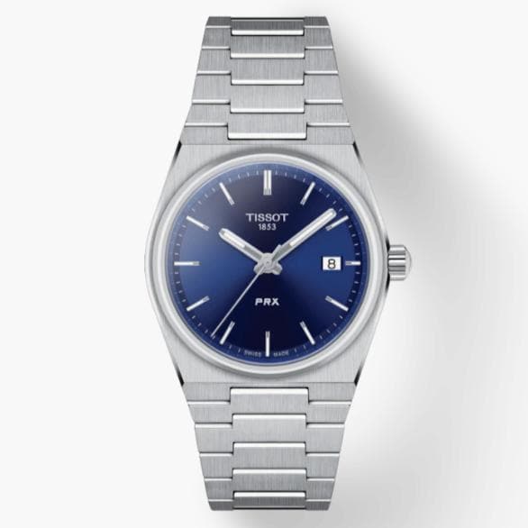Tissot ripropone un design iconico della fine degli anni '70, con cassa e bracciale integrati. La cassa del Tissot PRX Lady misura 35 mm di diametro. Ha una linea leggermente a botte e ospita una lunetta liscia, sottile e rotonda.