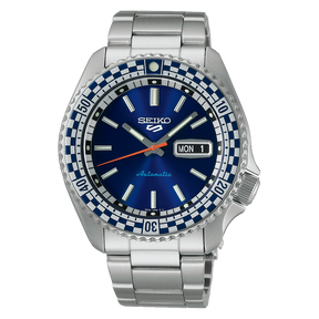 L'orologio in edizione speciale SRPK65K1 presenta l'emblematico design "Checker Flag". La scritta "SPECIAL EDITiON" è incisa sul fondello. Questo modello è animato dal movimento automatico Calibro 4R36. La lumibrite applicata alle lancette e agli indici garantisce un'eccellente leggibilità al buio. L'orologio è montato su un bracciale in acciaio inossidabile.
