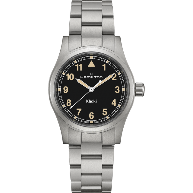 Perfetto per le tue avventure, il Khaki Field Quartz è un compagno affidabile e resistente, pronto per ogni esplorazione. Ispirato alla tradizione di precisione, innovazione e design funzionale di Hamilton, il Khaki Field Quartz combina un quadrante verde da 38 mm con un moderno bracciale in metallo, offrendo uno stile intramontabile.
