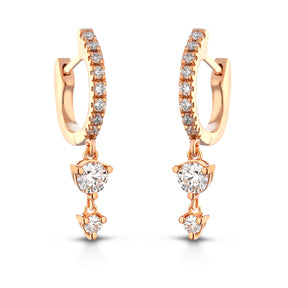 Orecchini a cerchietto con diamanti e pendente con unico diamante taglio brillante, in oro rosa 18kt.