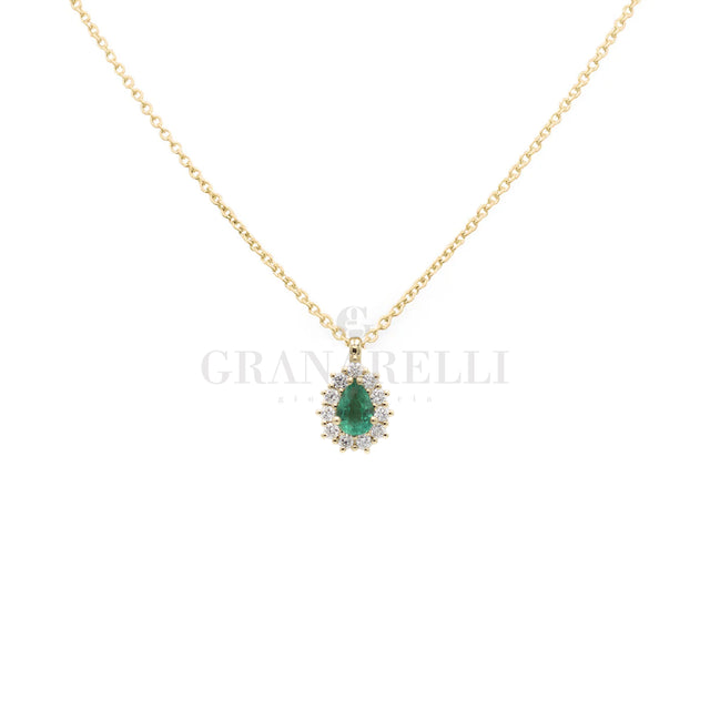 Girocollo Goccia Smeraldo 0.37 kt con Diamanti in oro giallo