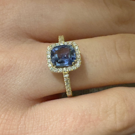 Anello in Oro giallo con Zaffiro 1.52kt e contorno di Diamanti