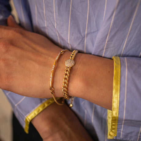 Bracciale Groumette doppia catena in Oro Giallo e Diamanti