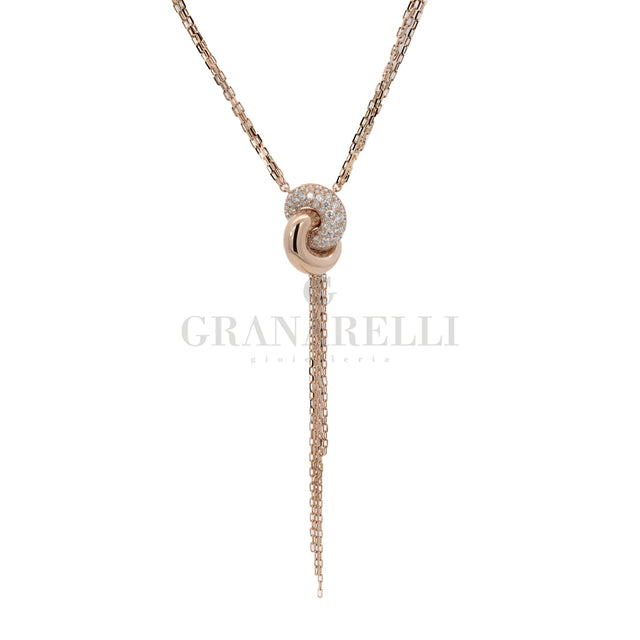 Collana in oro rosa, con cravattino loop e pavè di diamanti