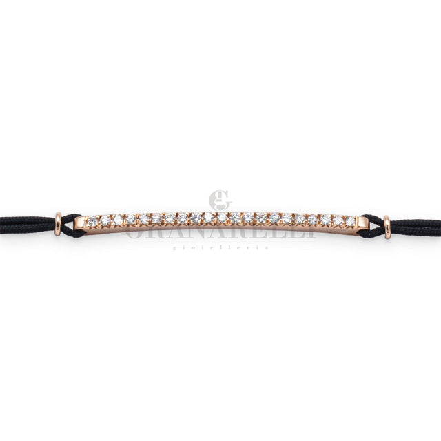 Bracciale Barretta Diamanti Bianchi Misura Media in Oro Rosa cordino nautico