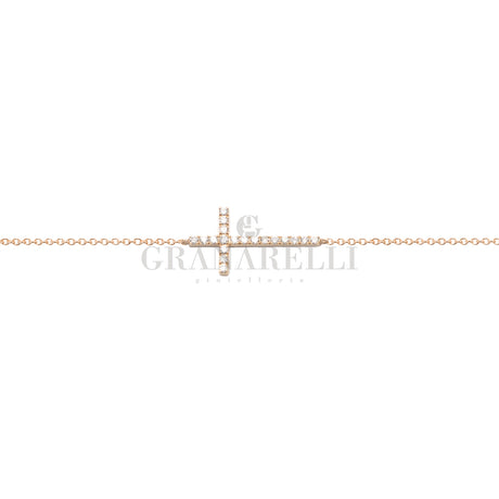Bracciale Oro Rosa Croce in Diamanti Bianchi