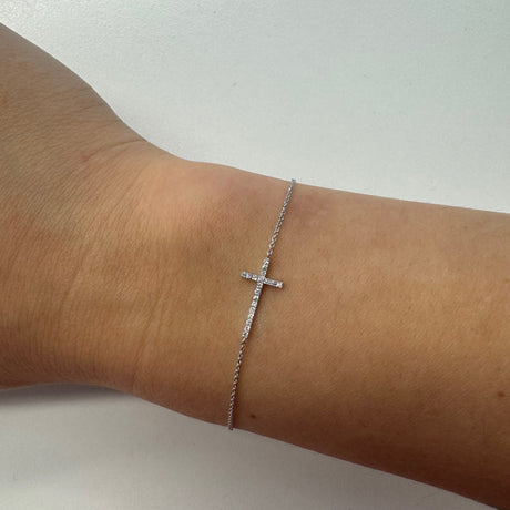 Bracciale Oro Bianco Croce in Diamanti Bianchi