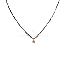 Girocollo in acciaio pvd black, punto luce in oro rosa con diamante da 0,03kt taglio brillante.