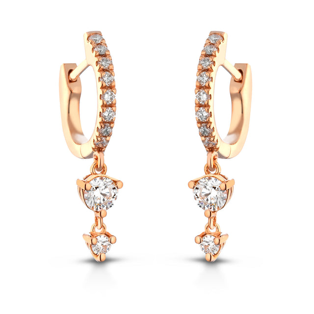 Orecchini cerchi oro Rosa con diamanti e pendente