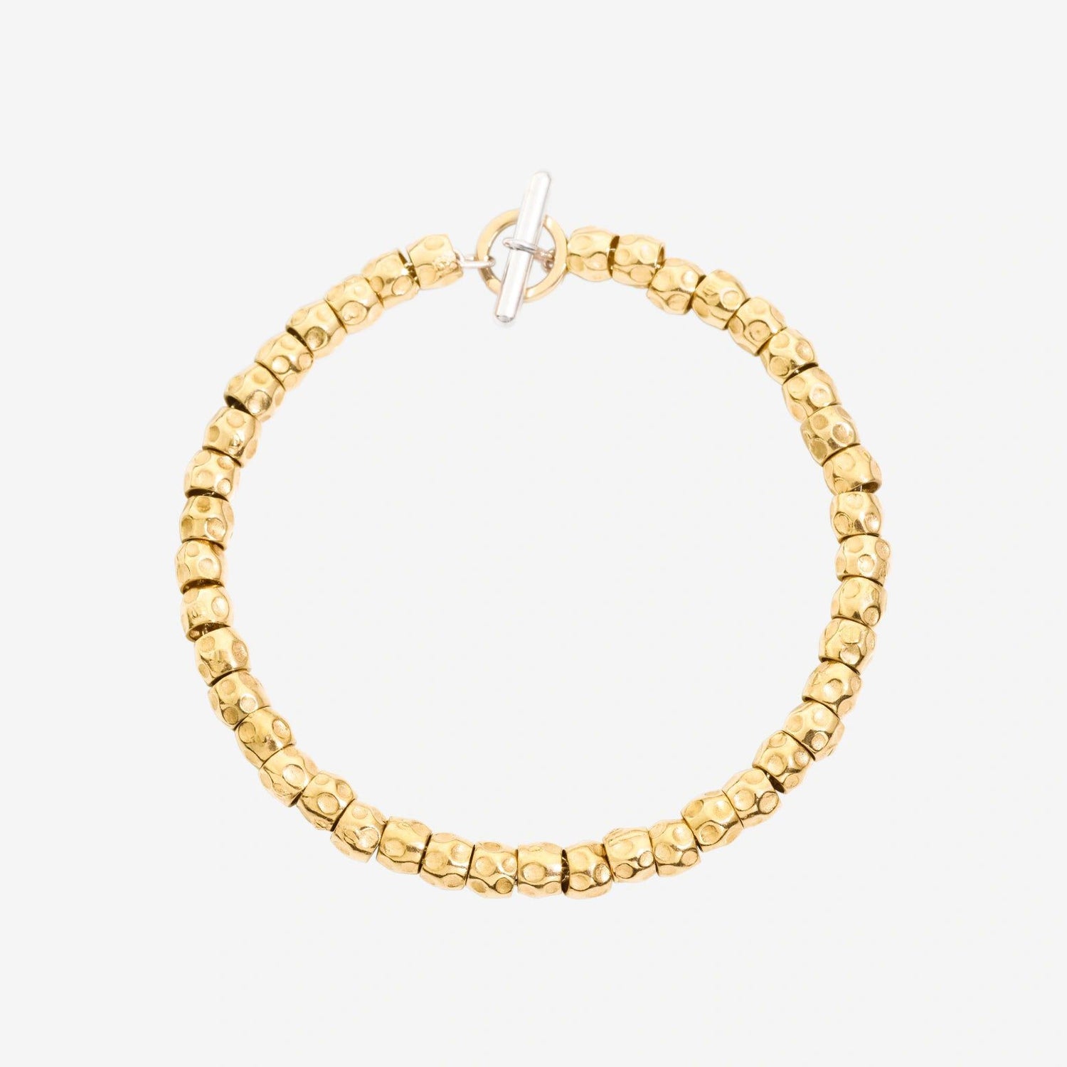 Bracciale granelli in oro giallo 18K, catena in argento 925 con Anello brisè in oro giallo 18K. Ago in argento 925 incluso.