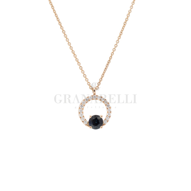 Girocollo Con Cerchio di Brillanti e Zaffiro Blu centrale in oro rosa 18kt
