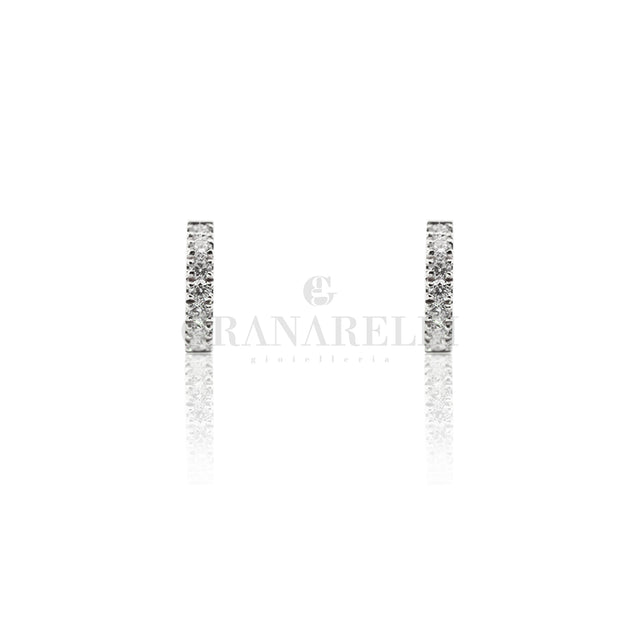 Orecchini cerchi mini in oro bianco 18 kt e diamanti bianchi.