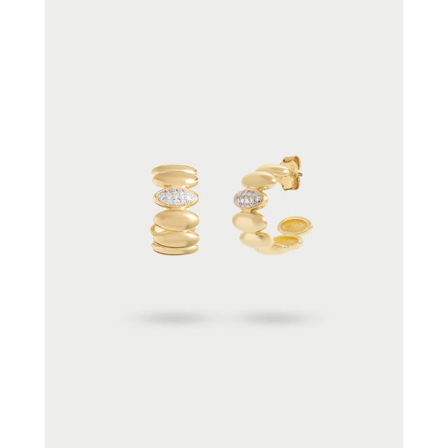 Le forme ellittiche, morbide e armoniose, ricordano i movimenti celesti, evocando un’eleganza cosmica che abbraccia chi la indossa.