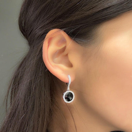Orecchini Onice Nera e Diamanti In Oro Bianco