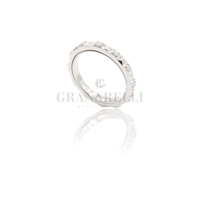 Anello in oro bianco 18 ct con borchiette e diamanti bianchi.