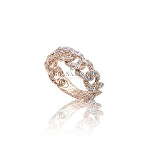 Anello catena groumette morbida in oro rosa kt, con diamanti bianchi.